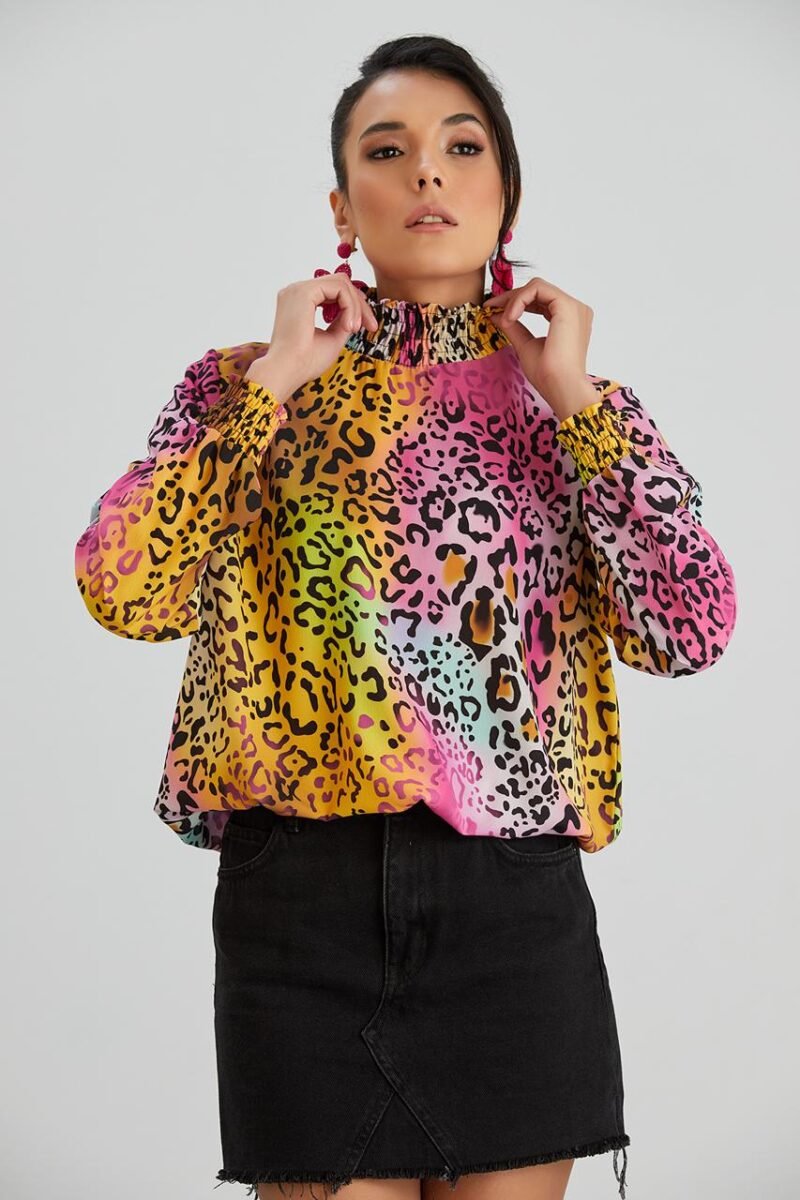 Original price was: € 59,00.€ 32,99Current price is: € 32,99.High Neck Oversize Top in Pink Leopard