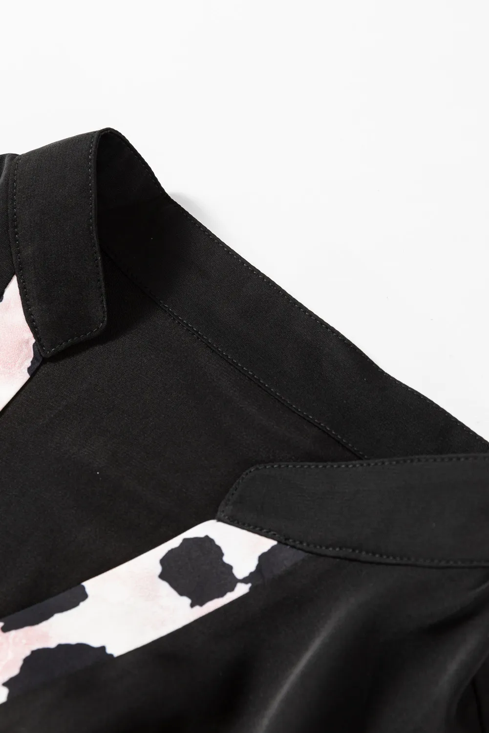 Pink Multicolor Floral Patchwork Shirred Cuffs Buttoned Blouse
