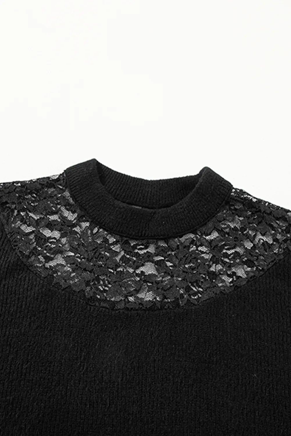 Home PLUS SIZE Plus Size Tops Black Plus Size Ribbed Knit Lace Splicing High Neck Sweater