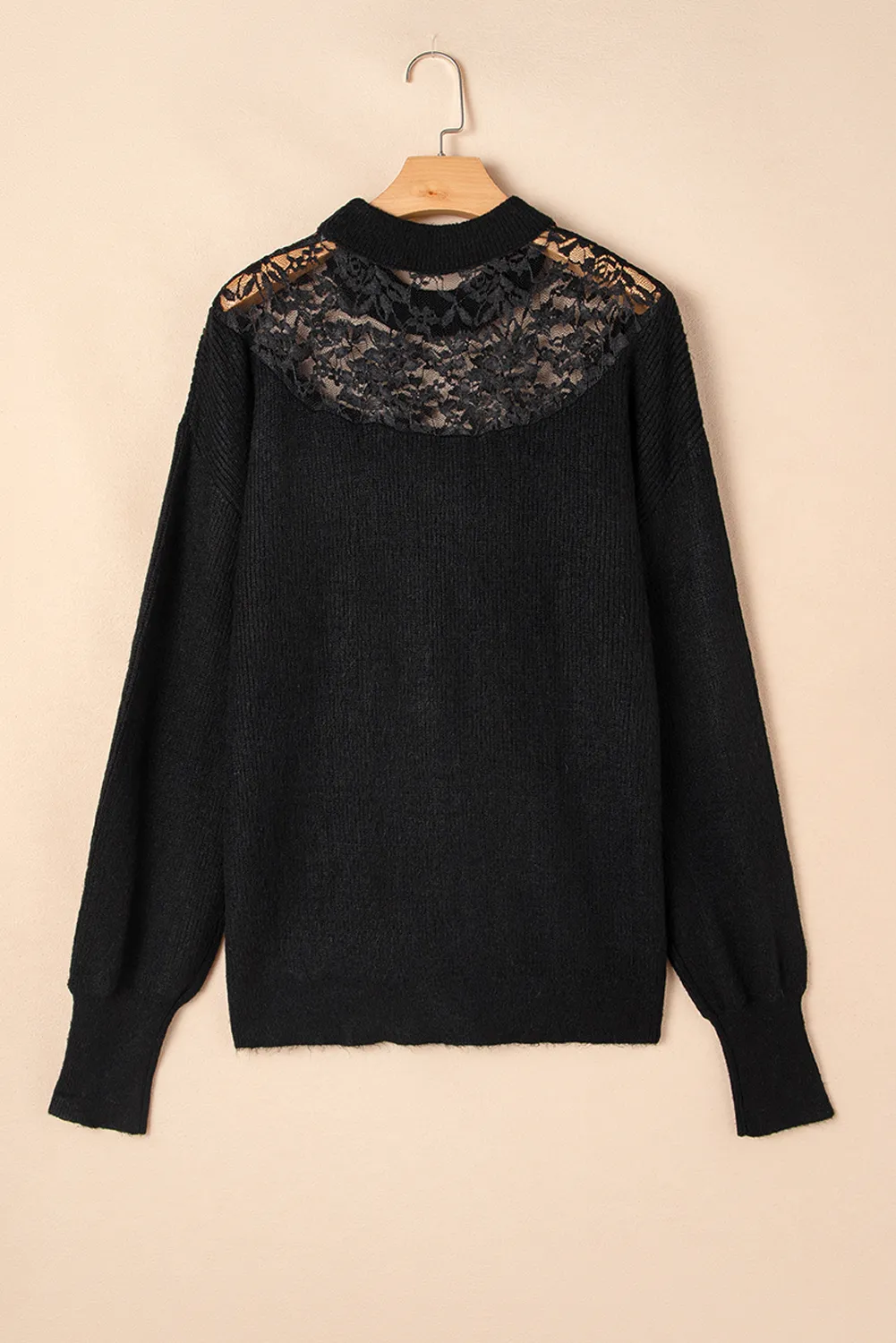 Be the first to review “Black Plus Size Ribbed Knit Lace Splicing High Neck Sweater” Cancel reply