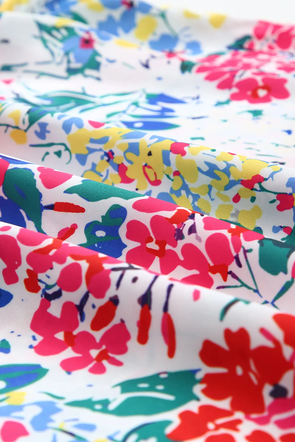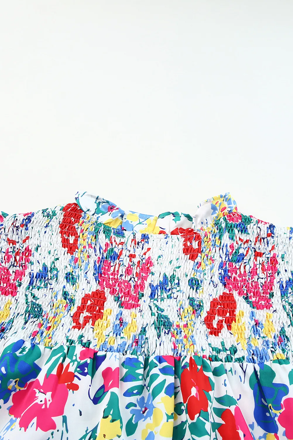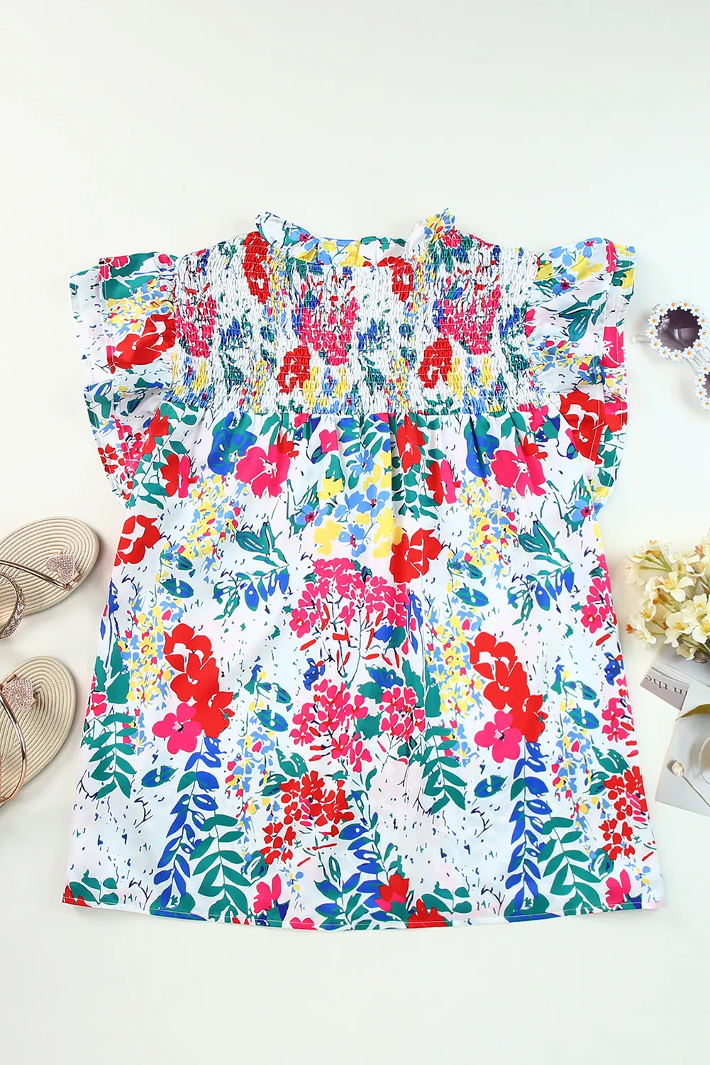 • Stay on-trend with the beautiful floral print and ruffled cap sleeves