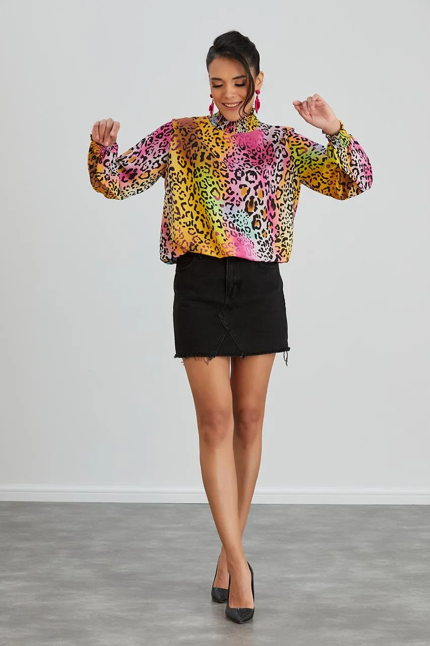 Add a splash of color and pattern to your collection with the High Neck Oversize Top in Pink Leopard and make every moment a fashionable one!