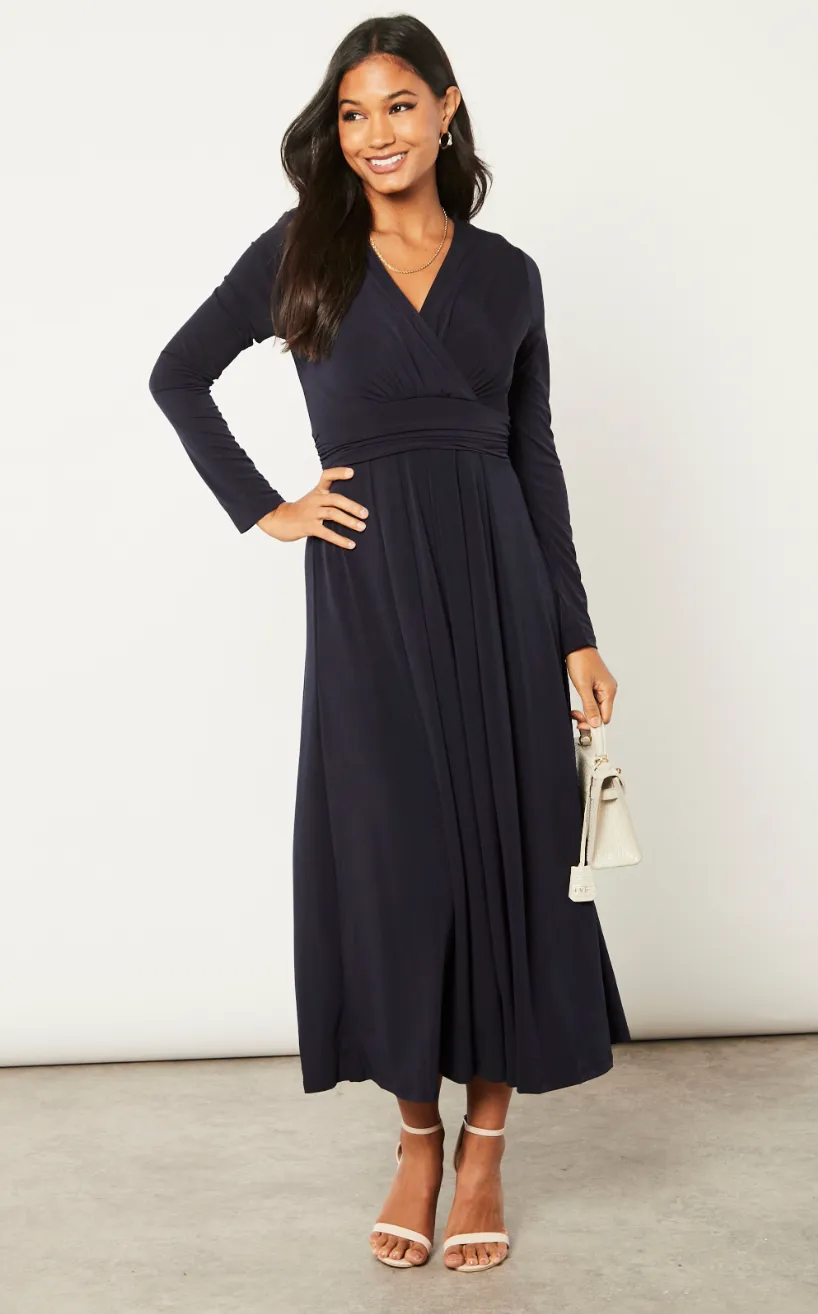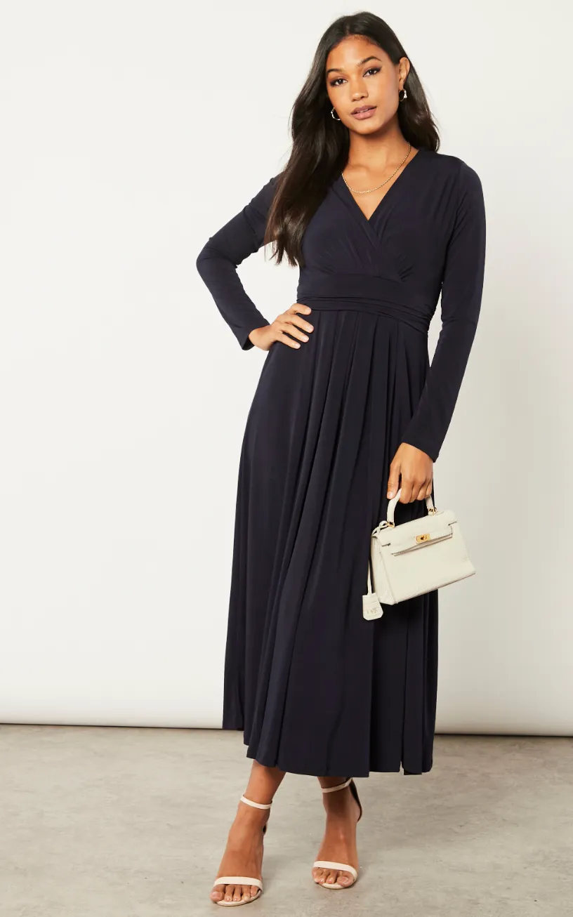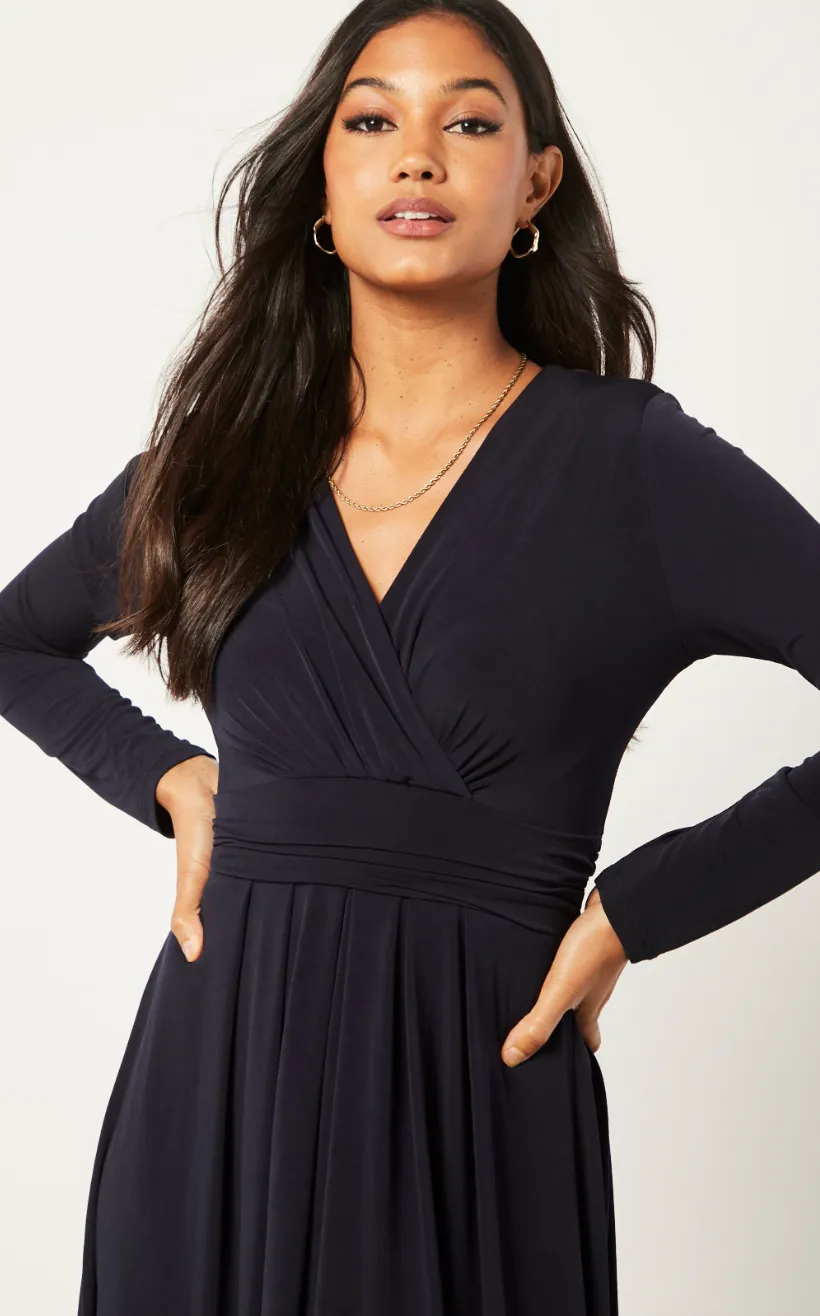 Long Sleeve Wrap Midi/Maxi dress in plain colours.