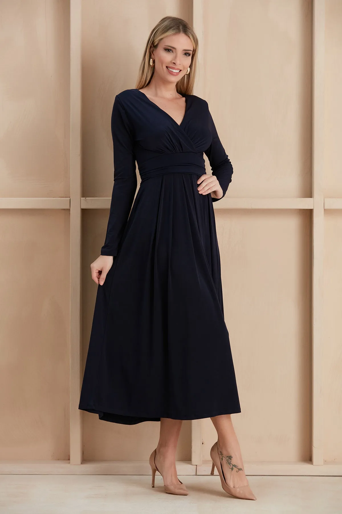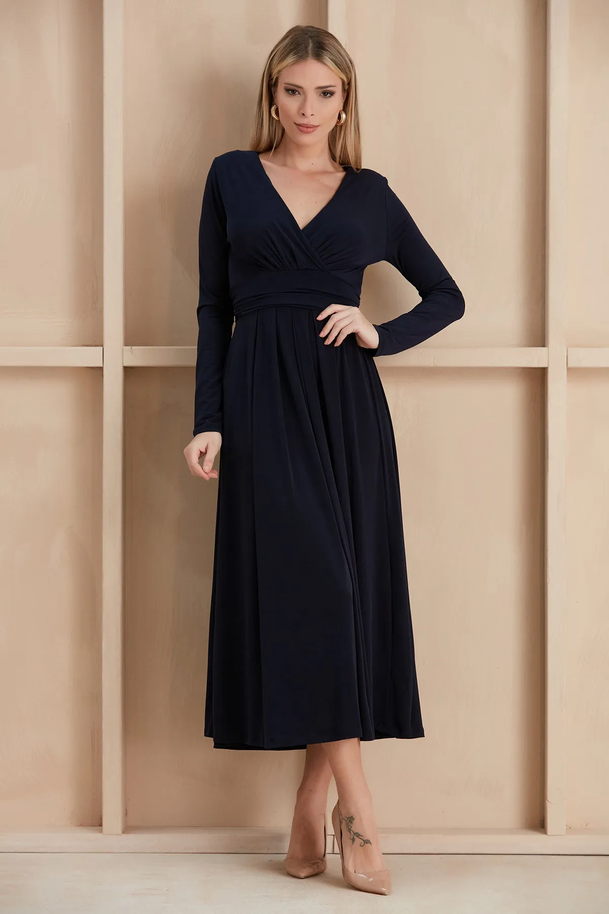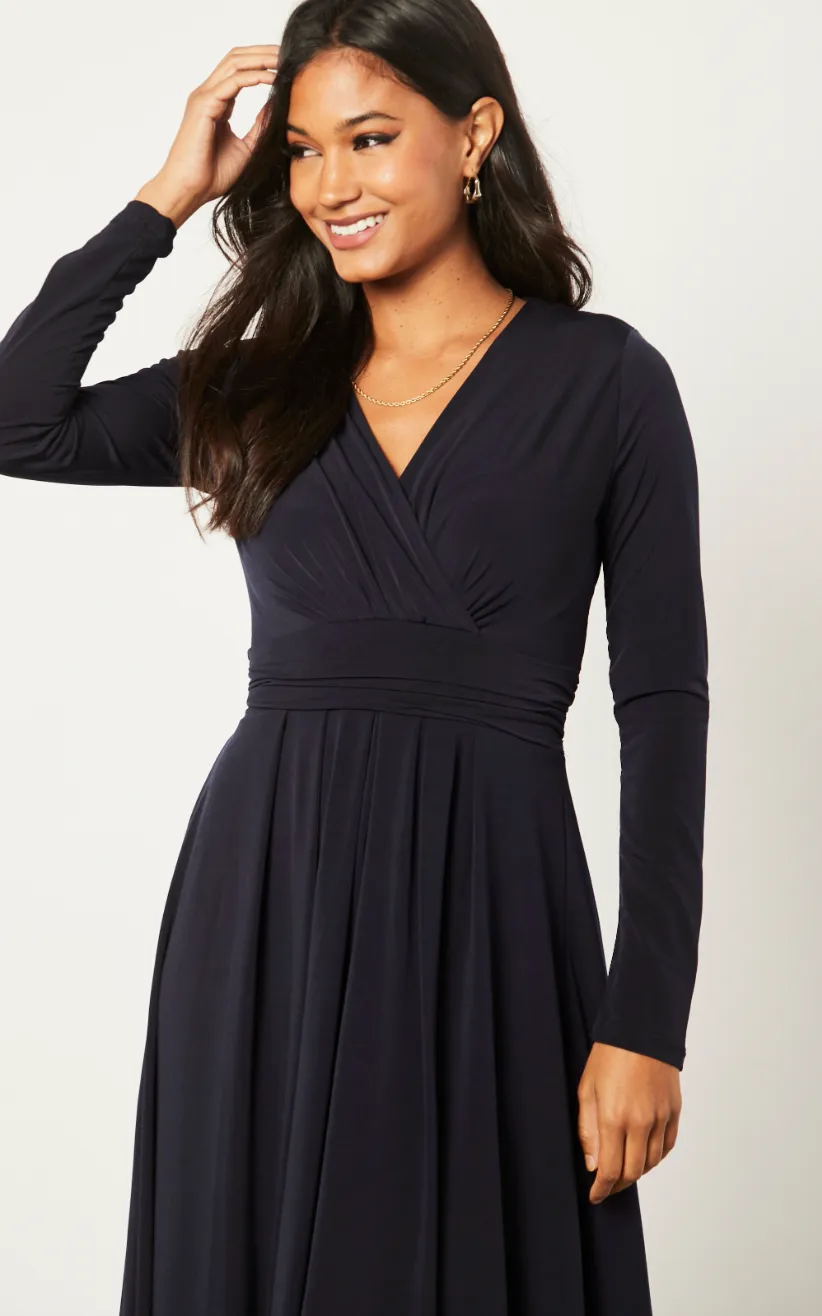 Long Sleeve Wrap Midi/Maxi dress in plain colours.