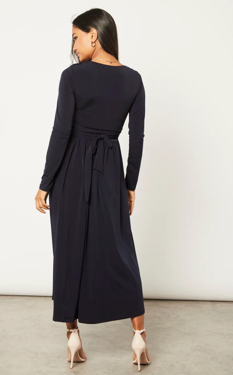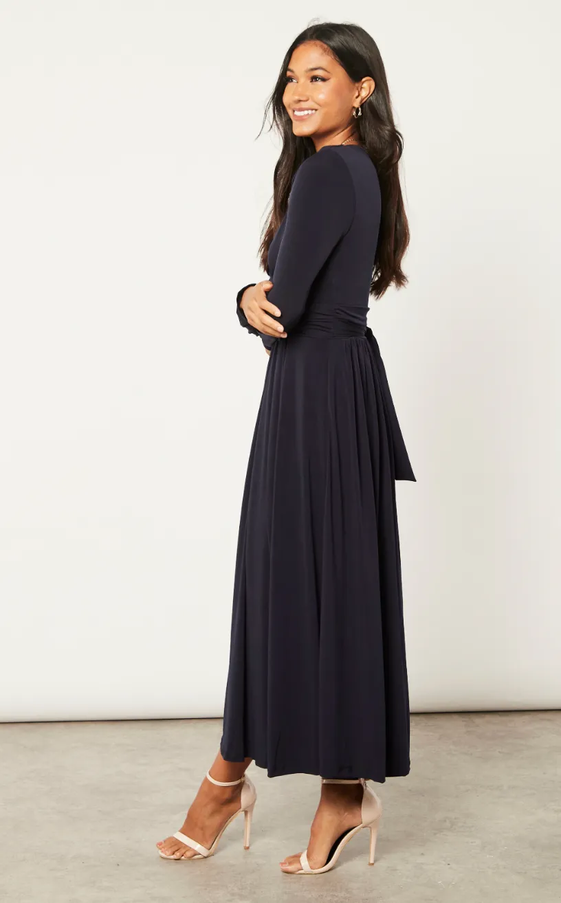 Long Beltish Maxi Dress in Dark Navy