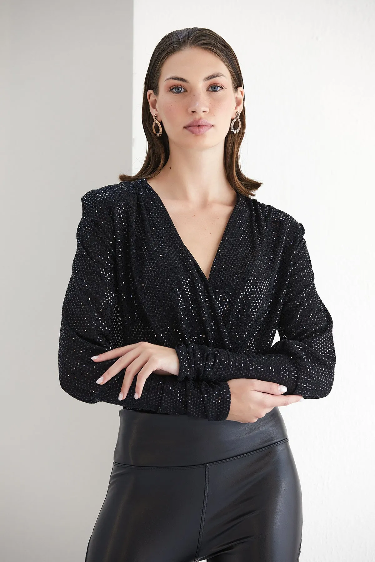 Sparkle Black Long Sleeve Bodysuit